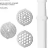 | Насадки | Диск для фарша; Для приготовления колбас; Кеббе |