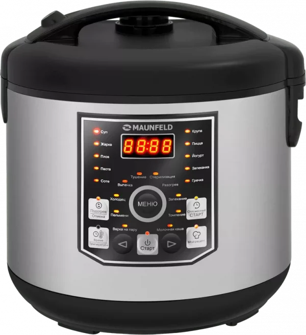 | Режимы работы | Бульон; Выпечка; Гуляш; Жарка; Запекание; Йогурт; Крупа; Молочная каша; Паста; Пельмени; Пицца; Плов; Подогрев; Приготовление на пару; Сосиски; Соте; Суп; Томление; Тушение; Холодец |